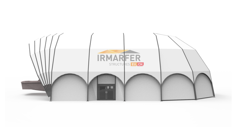 Die spezielle Form dieses Hallensystems eigener sich hervorragend für Gebiete mit höheren Windlasten (Meer) und fügt sich ideal in die ohnehin zumeist limitierte Fläche in Häfen, Marinas ein.